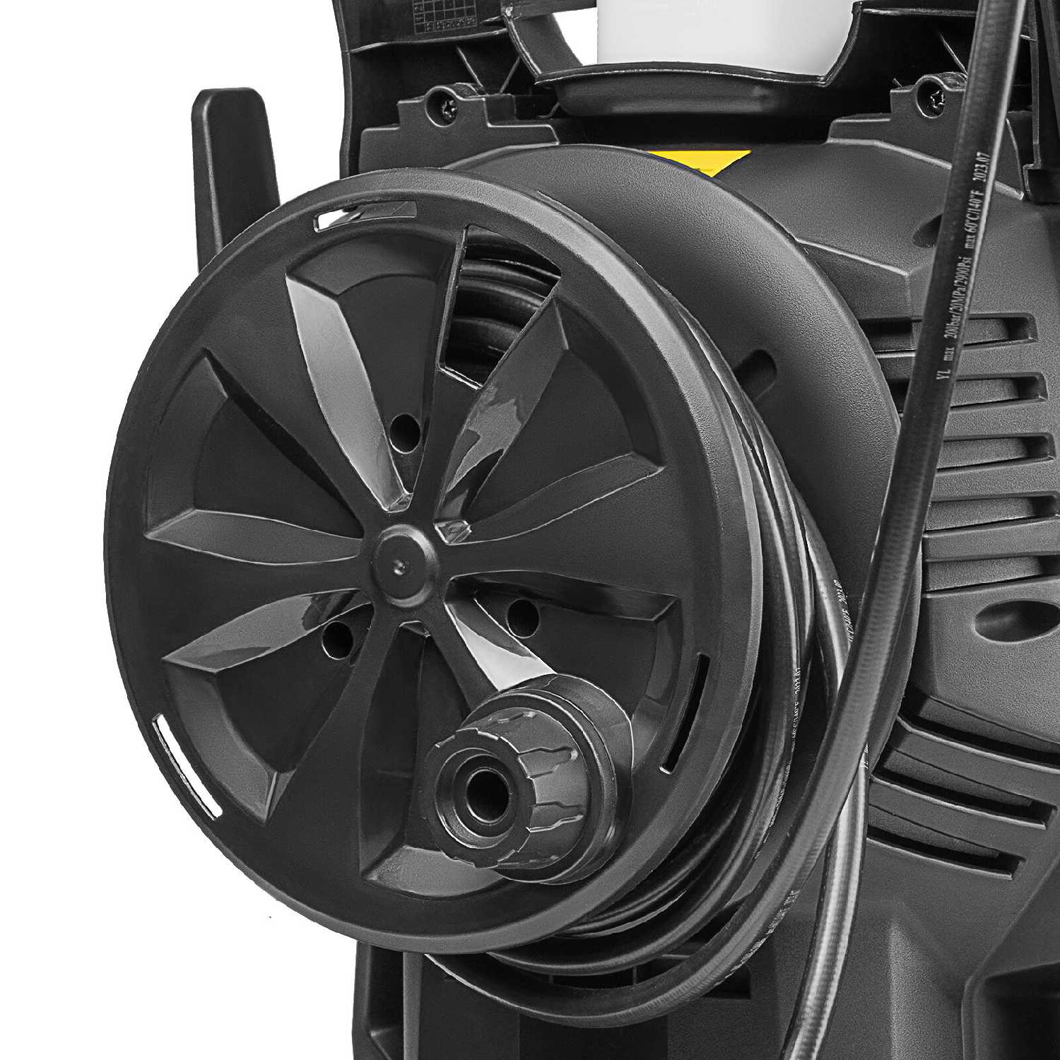 - Барабанная система для намотки 8-метрового шланга и электрокабеля предотвращает запутывание.