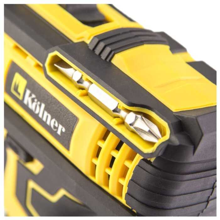 P.S. Дополнение от 06.11.2019. Связывался с Kolner после обнаружения несоответствия ёмкости аккумулятора, заверили, что просто ошибка маркировки на заводе (батареи уже на 2 А*ч, а термоусадка ещё со старой маркировкой). По эксплуатации, за эти деньги, в принципе, отлично. Глобально иногда выпадает бита/сверло, т.к. затягивать надо ооочень упорно, чуть дашь слабину, ищи биту на полу. :) Аккумулятора хватает реально надолго, второй позволяет не ожидать зарядки первого. Мощности для бытовых нужд выше крыши. Чтобы не угробить редуктор, важно не забывать отключать трещётку в режиме сверления. Пока работает и очень даже неплохо, поэтому повысил кол-во звёзд, одну снял на "непонятки" с маркировкой батарей, но по сути, т.к. "держит" заряд очень долго, то уже всё-равно что там написано на аккумуляторе.