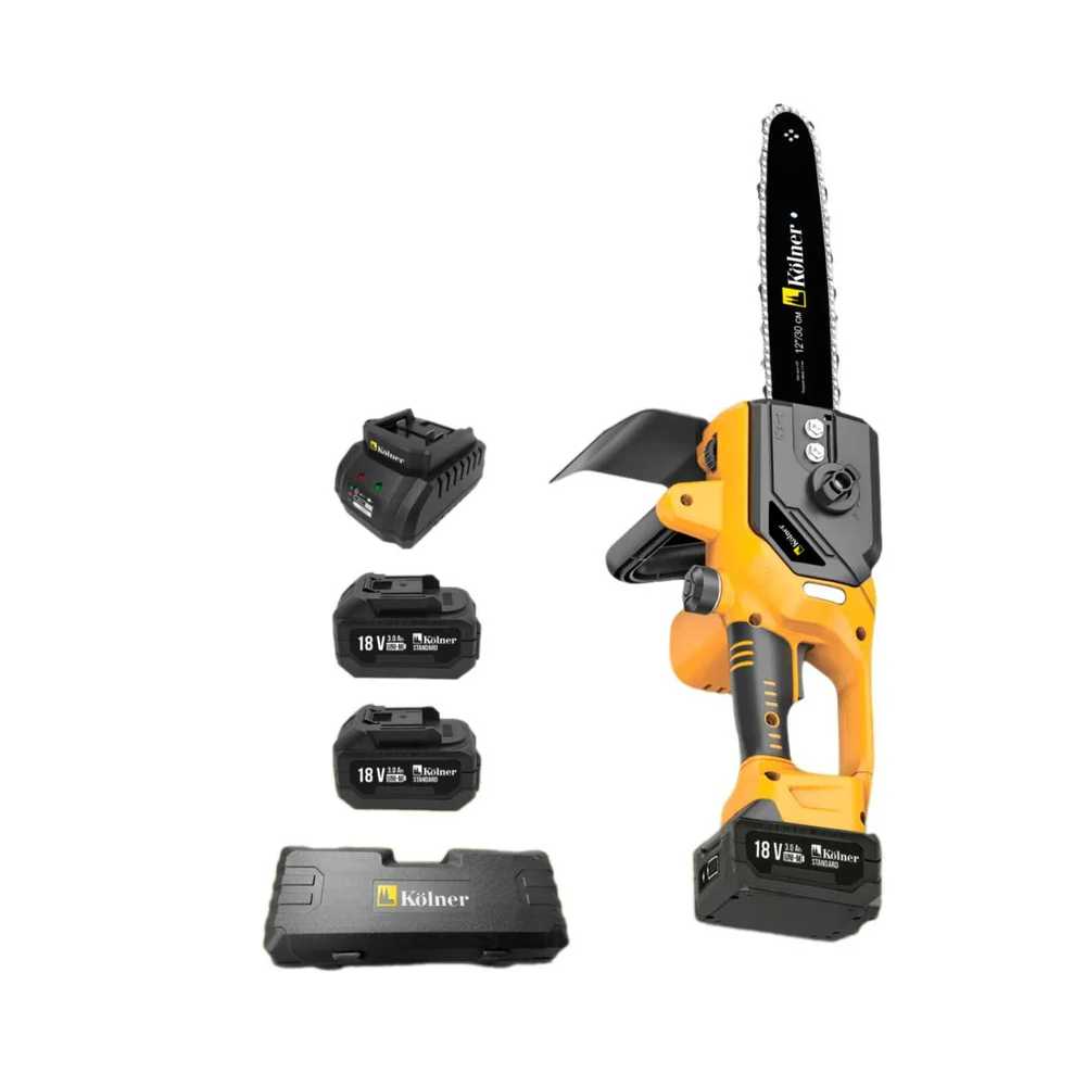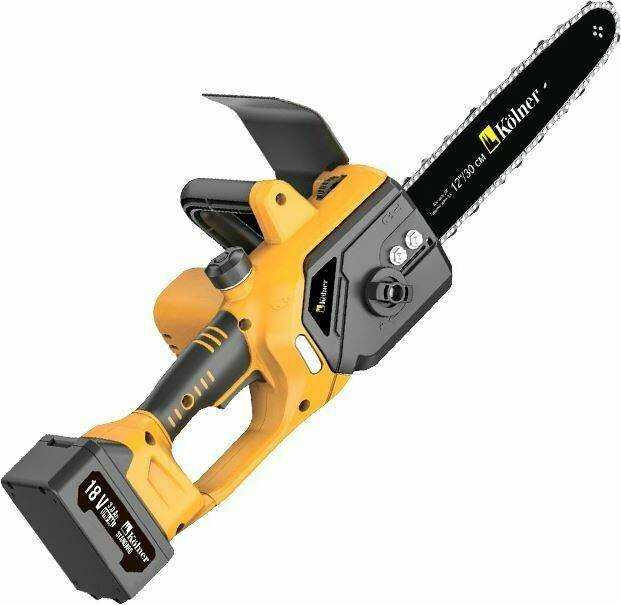 - + Лёгкая. Пилит до 15 см без изменений в скорости вращения, мощности хватает. 2 аккумулятора, меняются легко. Натяжение цепи производится легко.