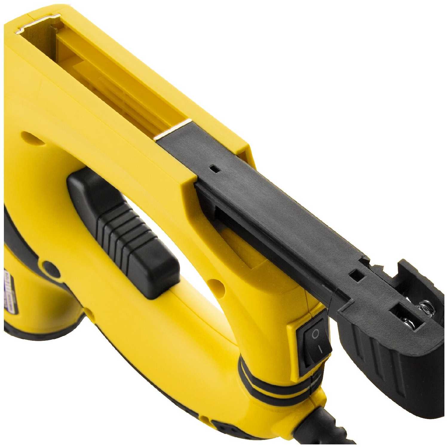Шнур коротковат. Использовал для прибивания вагонки. Работал 12 скобами. Отлично забивает. Минус в том, что пришлось подпилить носик чтобы он подлазил под доски. Также могу отметить что пластик мягковат, и остаются мелкие вмятины в районе где выстреливает скоба. Но нужно понимать что это дешевый степплер. Вполне подойдет для мебельных работ.