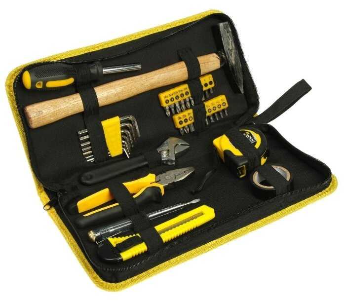 - + Отличный набор начального уровня, все что нужно для мелкого бытового ремонта. Покупал на подарок начинающему молодому домашнему мастеру.