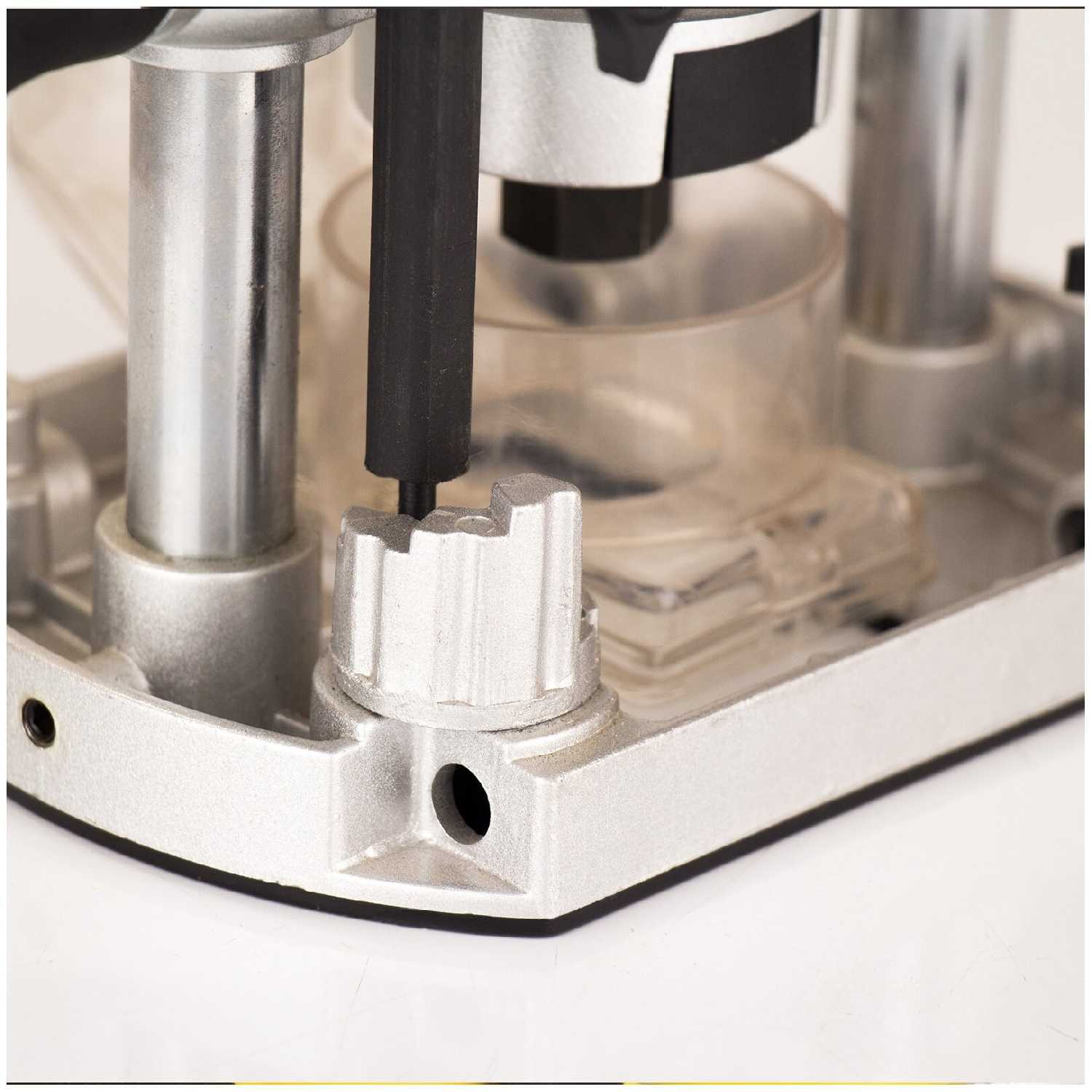 - Двигатель 1200 Вт сохраняет стабильные обороты даже при фрезеровке плотных пород дерева, таких как дуб или бук.