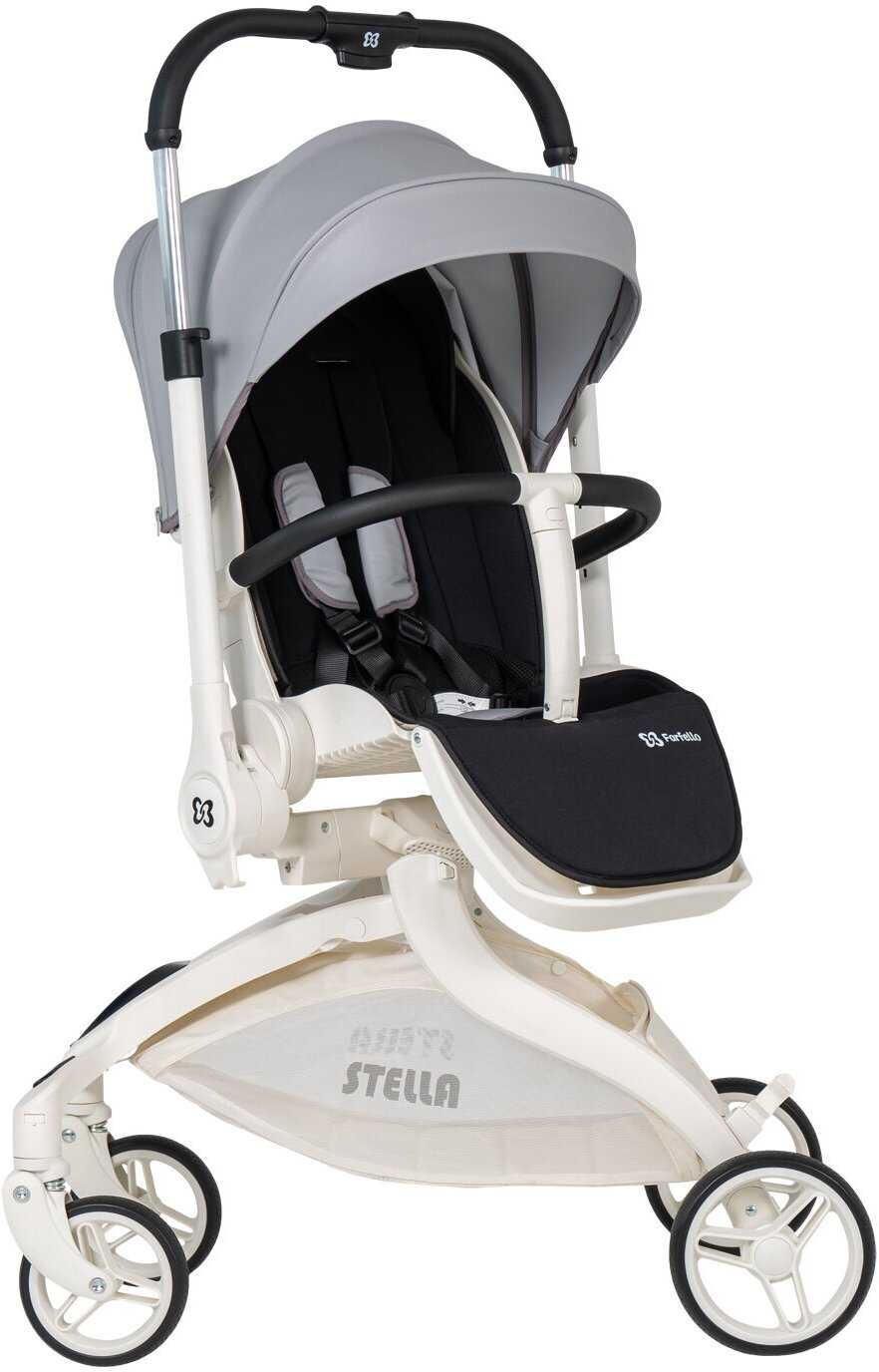 - складывается одной рукой 4 колеса вес коляски 7.7 кг нагрузка до 17 кг установка на шасси автокресла пятиточечные ремни безопасности капюшон из ткани пружинная амортизация корзина для покупок