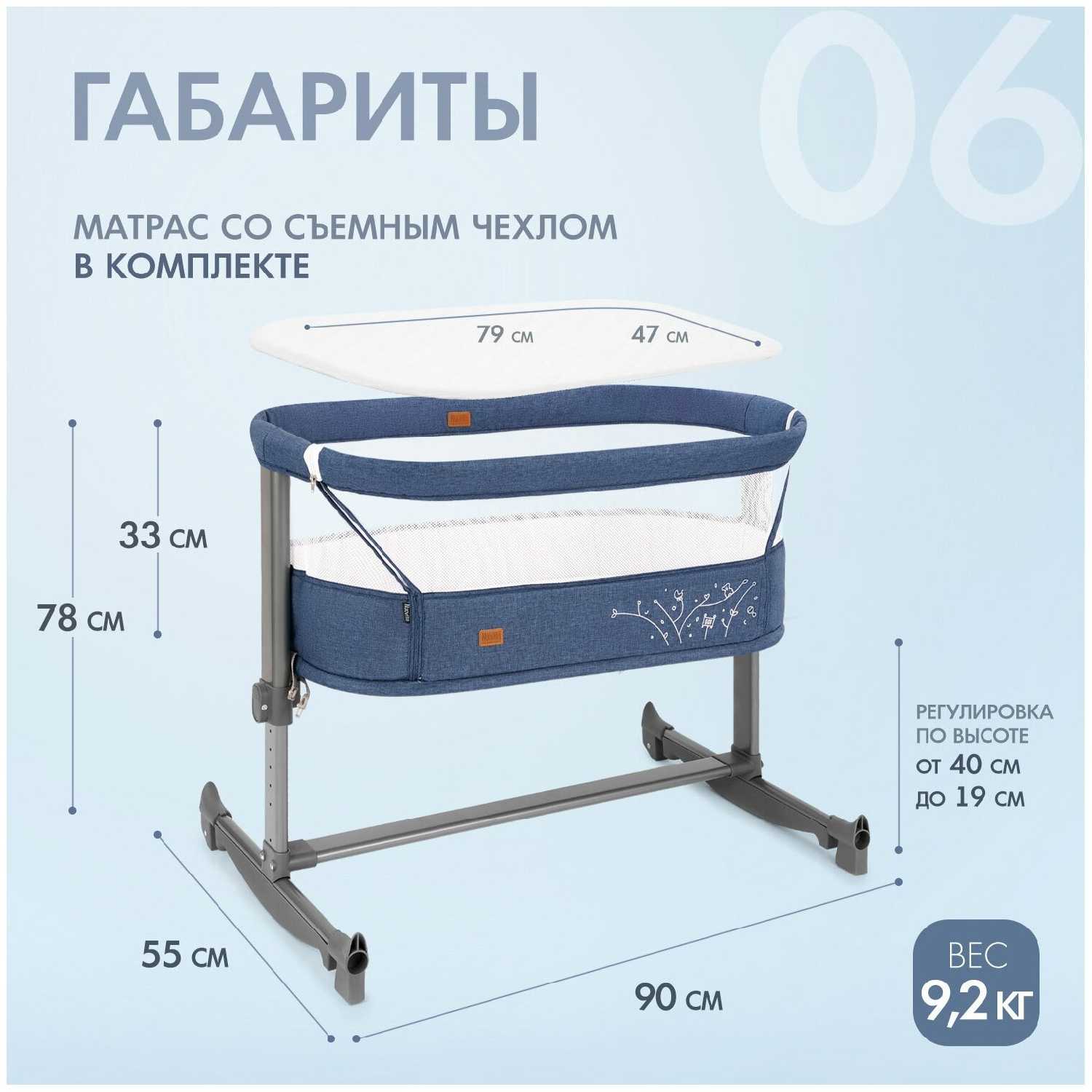 Характеристики:- каркас: пластик/металл матрас приставная спальное место: 85x48 cм колеса ДхШхВ: 96x69x81 cм
