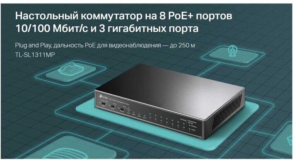 - 8 портов Ethernet 10/100/1000 Мбит/сек
