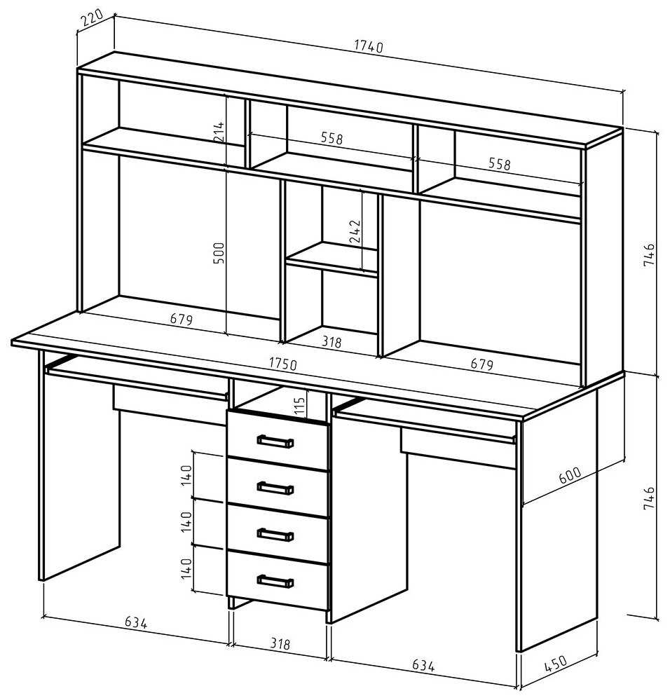 МФ Владимир Письменный стол для двоих Лайт-11 с надстройкой