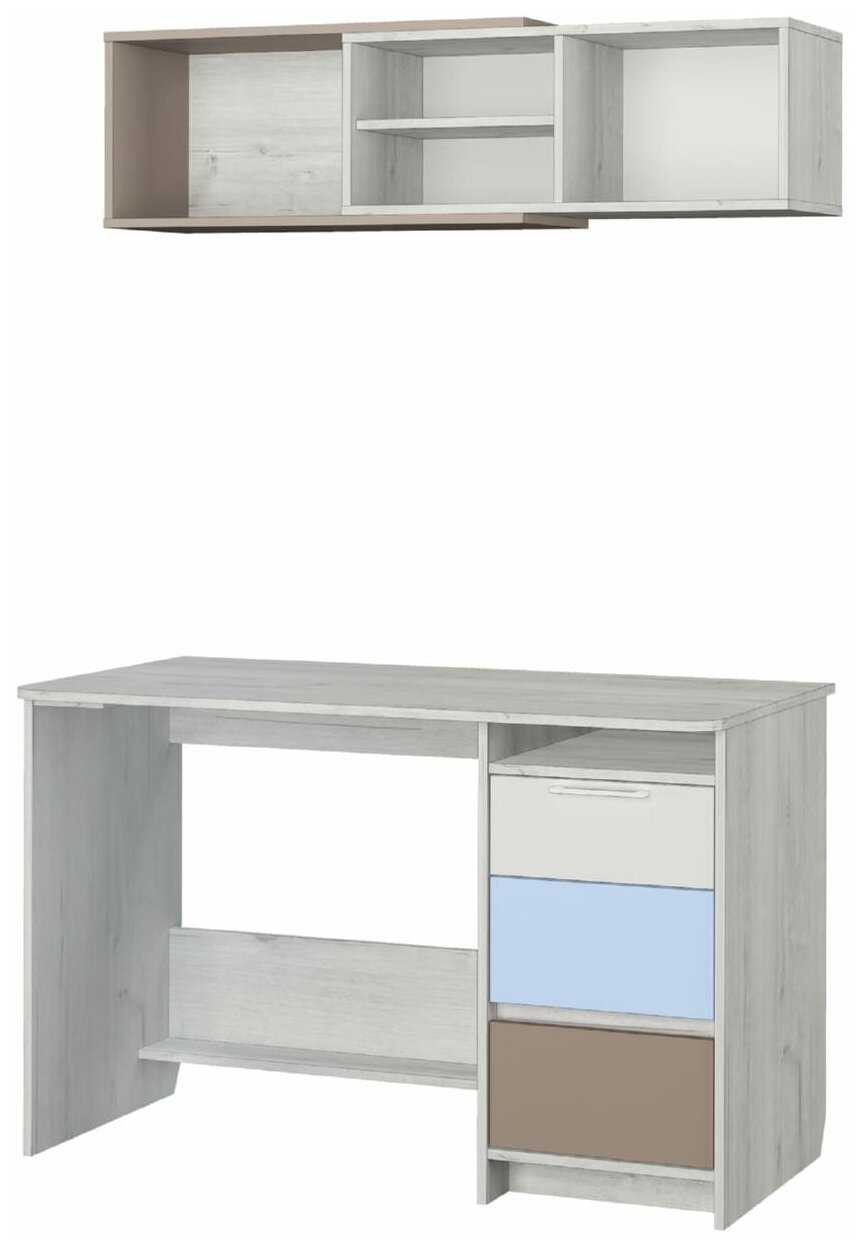 Шагус Стол письменный Зоя дуб эльза/белый глянец/голубой/мокко