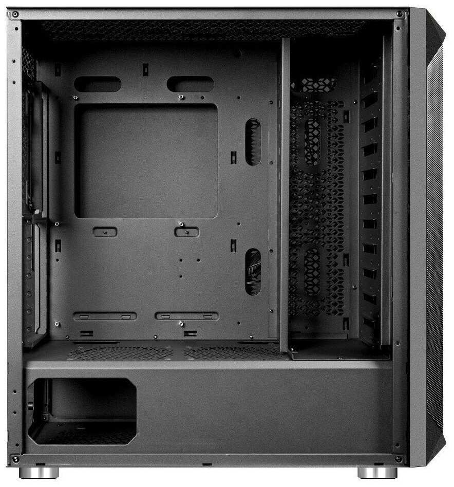 - Вполне себе нормальный, симпатичный корпус без явных недостатков, за адекватные деньги. Много места за задней стенкой для скрытой прокладки кабелей питания м/п и пр. Вентиляторы...
