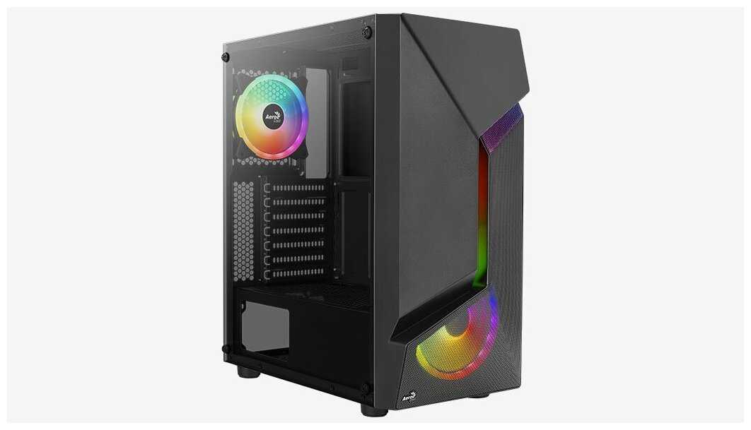 AeroCool SCAPE-G-BK-v2 (2xUSB, 2xAudio, 120 мм + 2x140 мм FAN, RGB подсветка, прозрачная стенка-закаленное стекло, mATX, без БП)