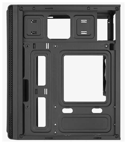 - Обычный недорогой корпус, достаточно хлипкий. Однако систему в нём собирать удобно, внешний вид неплохой, достаточно строгий, но это дело вкуса.