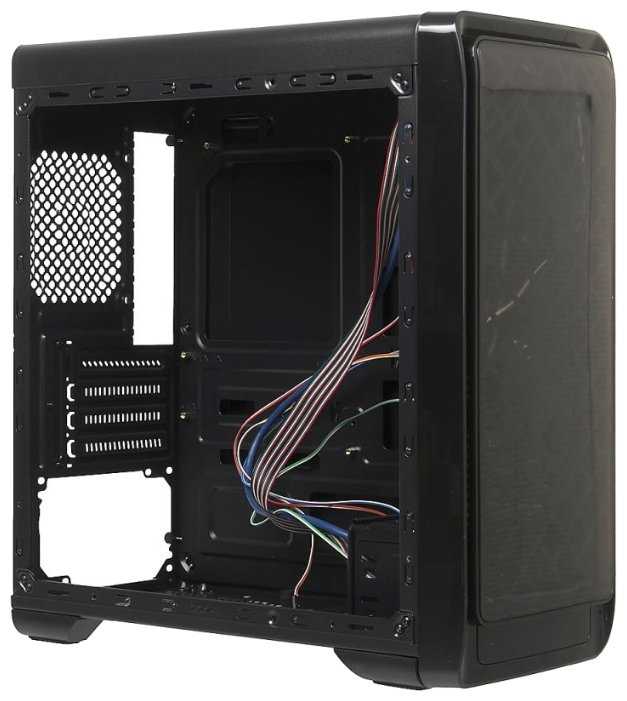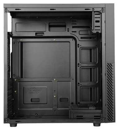 - Обычный недорогой корпус, достаточно хлипкий. Однако систему в нём собирать удобно, внешний вид неплохой, достаточно строгий, но это дело вкуса.