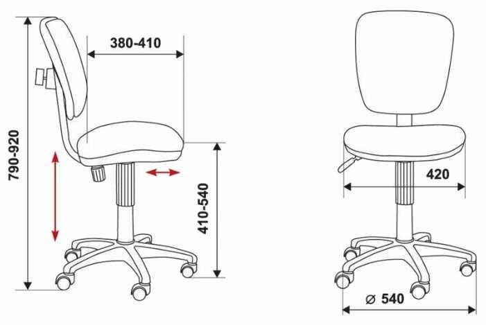 - регулировка высоты сидения Ширина сиденья: 54 см Глубина сиденья: 46 см