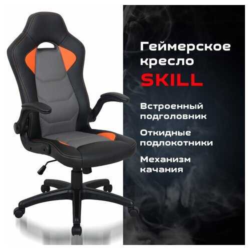 Brabix Skill GM-005", откидные подлокотники, экокожа, черное/оранжевое, 532495