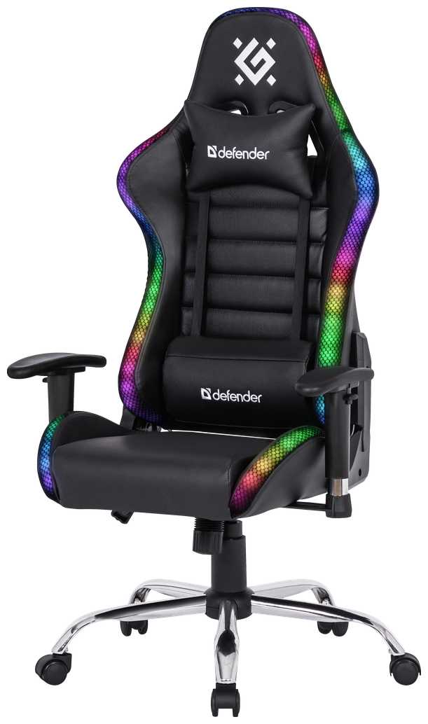 7.4/10 балловDefender для геймеров и офиса в черном/белом цвете с RGB подсветкой, из эко-кожи с регулировкой высоты и спинкой.