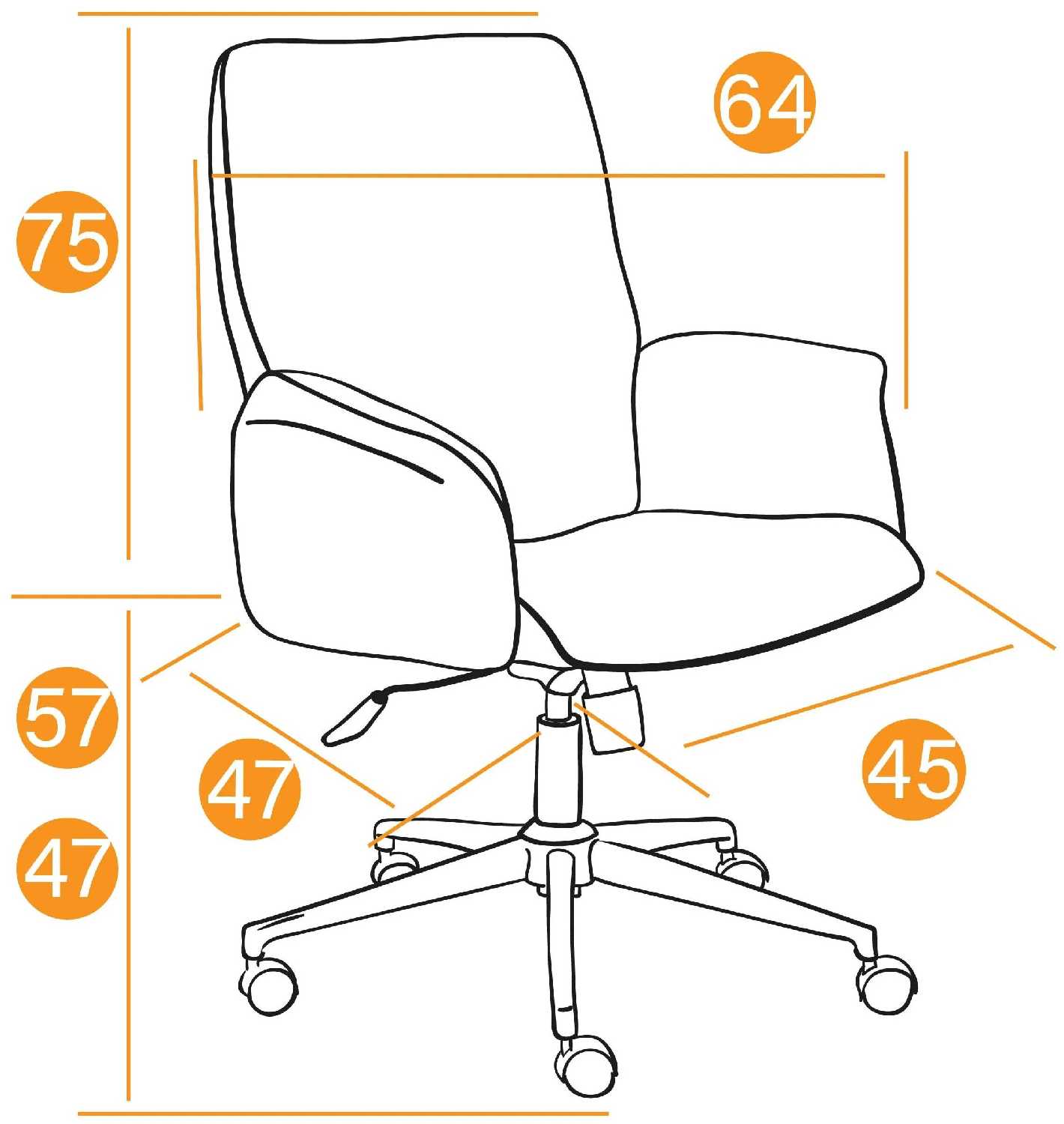 - регулировка высоты сидения полумягкие ролики регулировка высоты сиденья: «газлифт» Ширина сиденья: 45 см Глубина сиденья: 46 см