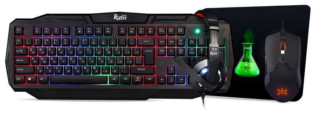 Характеристики:- состав комплекта: клавиатура + мышь + гарнитура + коврик