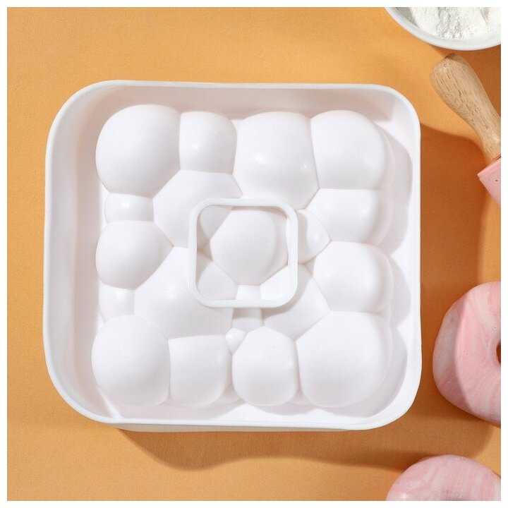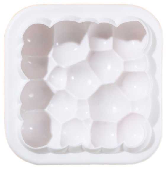 Дополнительная информация : | форма квадратная с закругленными углами выполнена из белого силикона, внутри 12 круглых выемок образующих фигуру напоминающую соты |