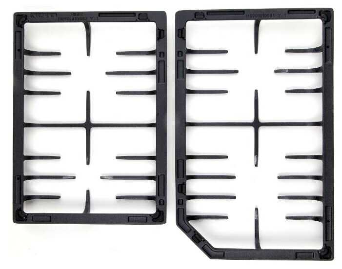 - + Вес решеток. Чугун однозначно, тут никакого обмана. Стекло прочное и уж точно термостойкое, я уже готовила на всех четырех конфорках, хорошее впечатление от поверхности осталось. Чугун легко убирается, стекло просто и быстро очищается, это идеальная встраиваемая поверхность.