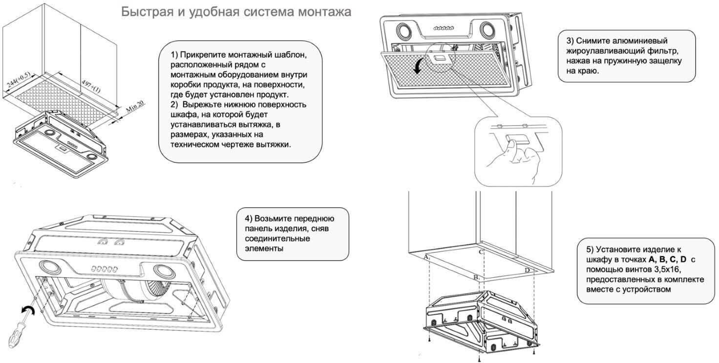 - + Работает вытяжка тихо, даже на максимальной скорости шум не мешает разговаривать. Воздух очищает быстро и эффективно, запахи еды больше не распространяются по квартире.
