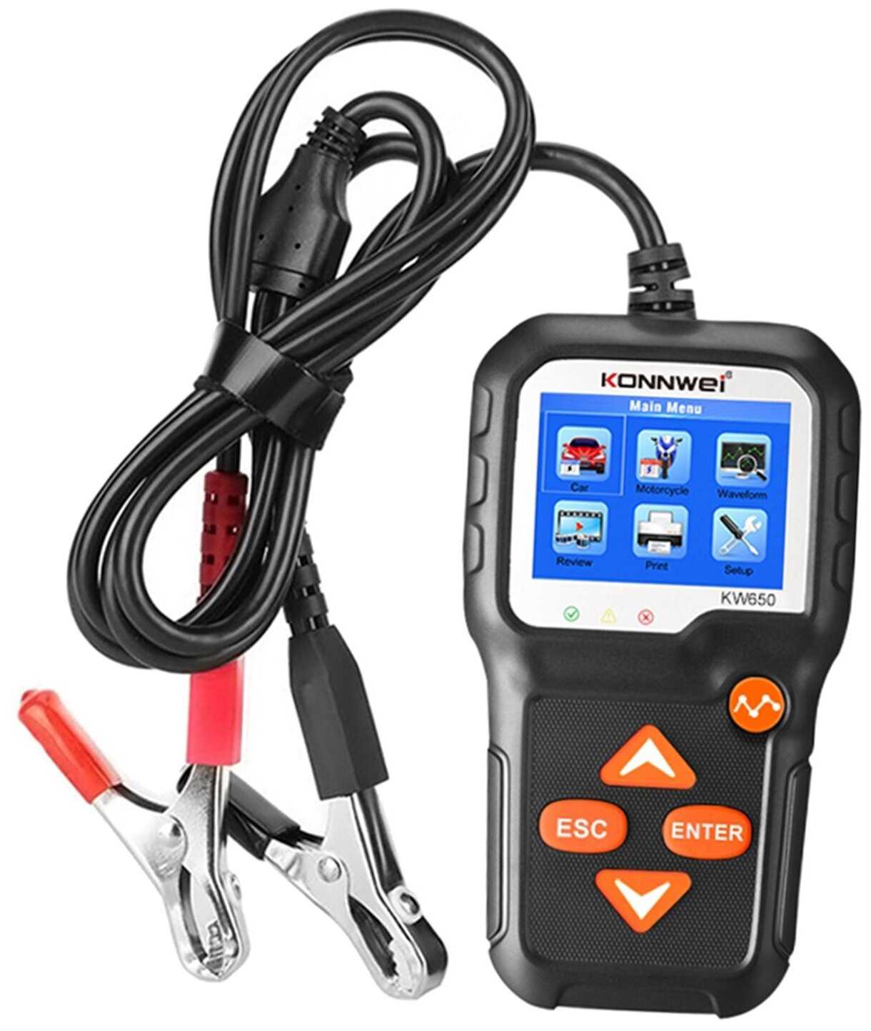 Итог: Konnwei KW650 — лучший в среднем ценовом сегменте (150–200$) для бытового использования. Его стоит выбрать, если нужен быстрый тест основных параметров без углублённого анализа. Для работы с тяговыми, литиевыми или нестандартными АКБ лучше рассмотреть модели с расширенными настройками профилей и внешними токовыми клещами.