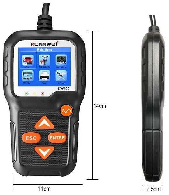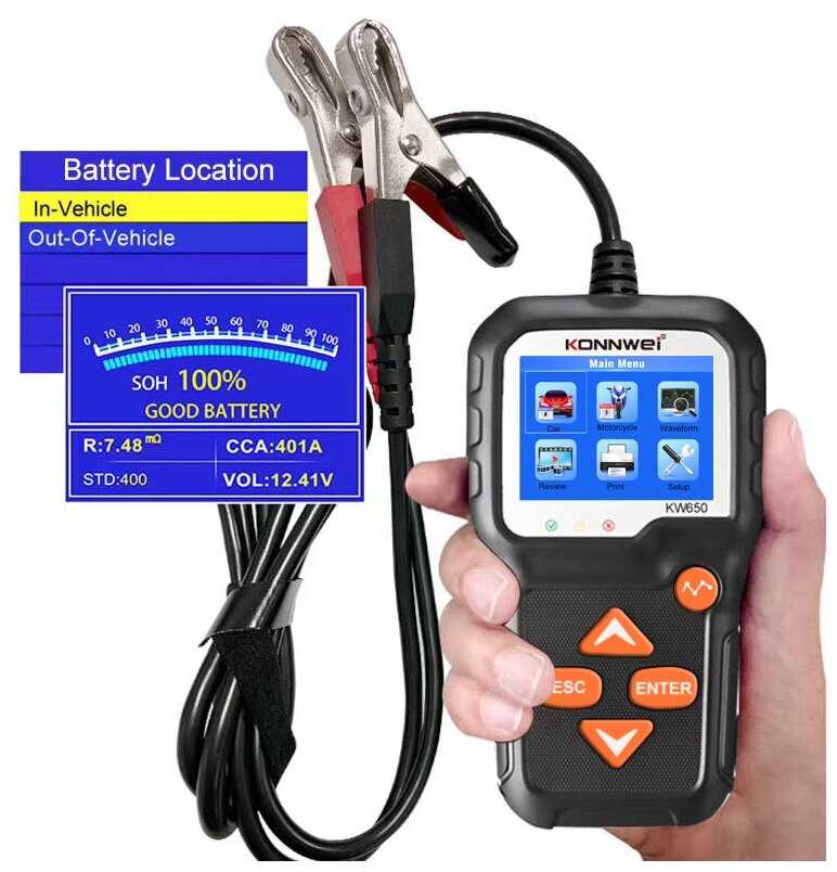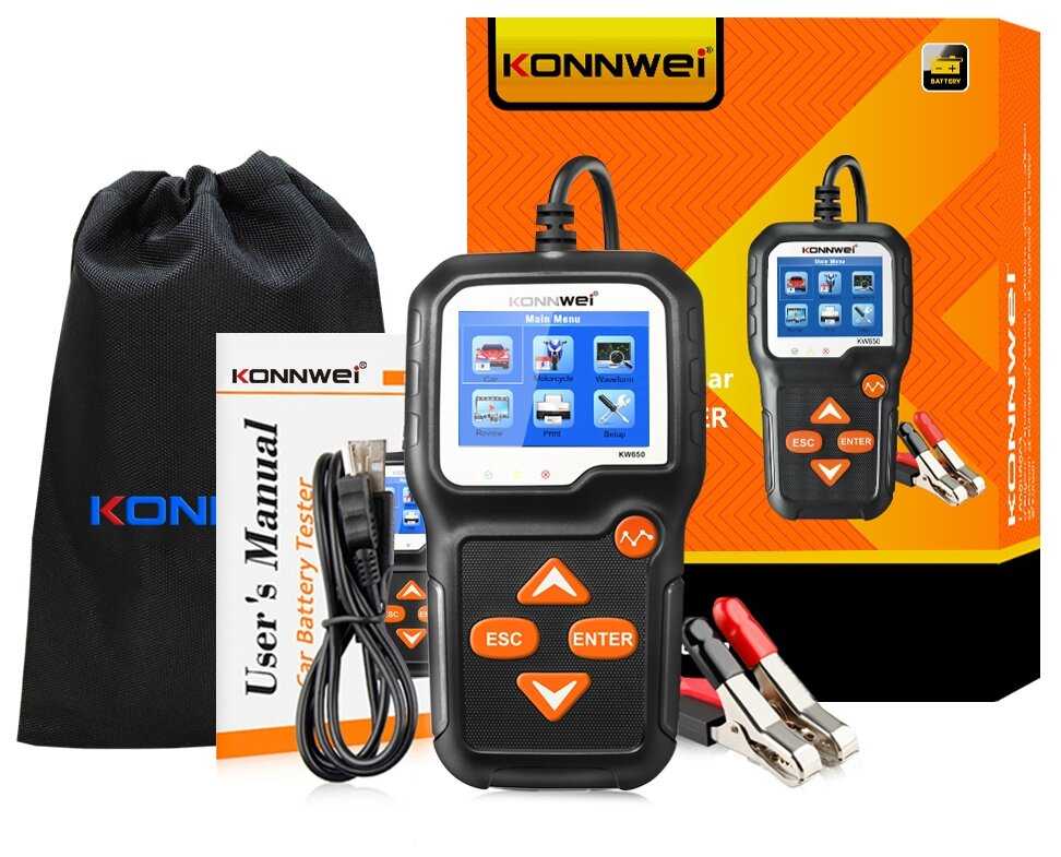 Konnwei KW650 — это продвинутый тестер АКБ, ориентированный на автомобилистов-энтузиастов и небольшие сервисы. Его ключевое преимущество — баланс между точностью (погрешность 2–3% по напряжению) и простотой использования. Устройство идеально подходит для регулярного мониторинга состояния свинцово-кислотных батарей в легковых авто, особенно в условиях холодных зим или частых коротких поездок, не обеспечивающих полноценный заряд. Тестер мгновенно выявляет критический износ (например, падение CCA ниже 70% номинала), что позволяет заранее планировать замену АКБ.