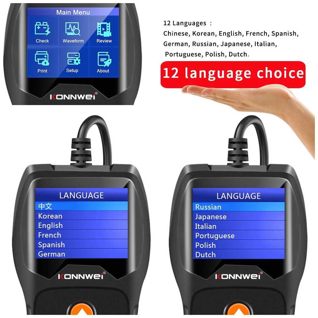 Приобрёл для диагностики аккумулятора. Повозился с подключением, ошибка была в том, что пытался сконектиться через блютуз телефона, а не через приложение, невнимательно читал инструкцию. Приложение на русском языке. Кстати можно диагностировать состояние зарядки генератора автомобиля. Отличный тестер, нужный автолюбителю.