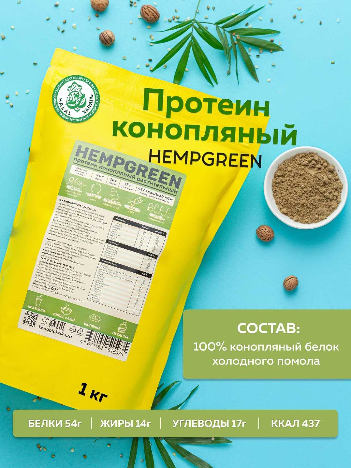 Натуральный растительный белок (протеин) из семян конопли KONOPLEKTIKA HEMPGREEN (1000 г) — 27 отзывов, плюсы и минусы