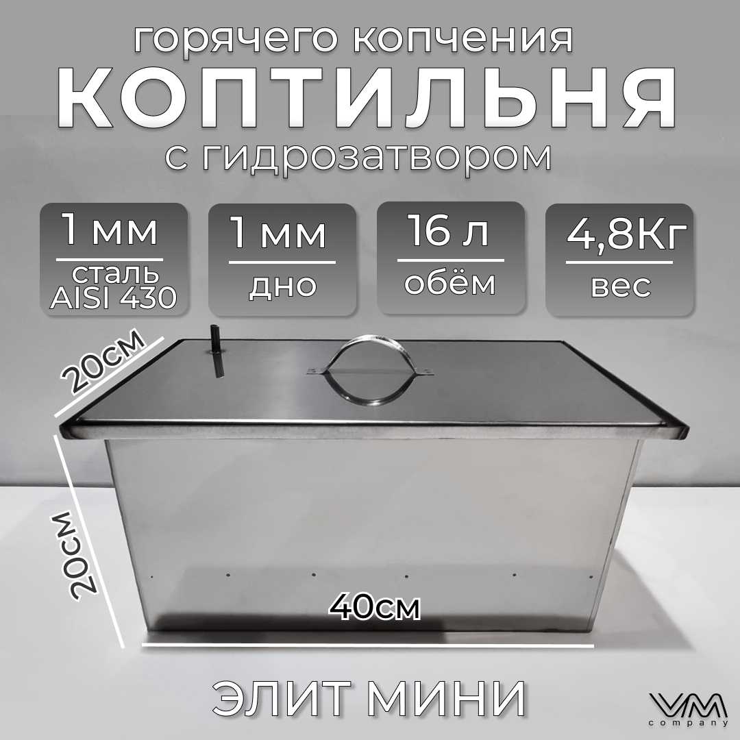 Ольховый дым Коптильня из нержавейки с гидрозатвором Профи 500х300х250