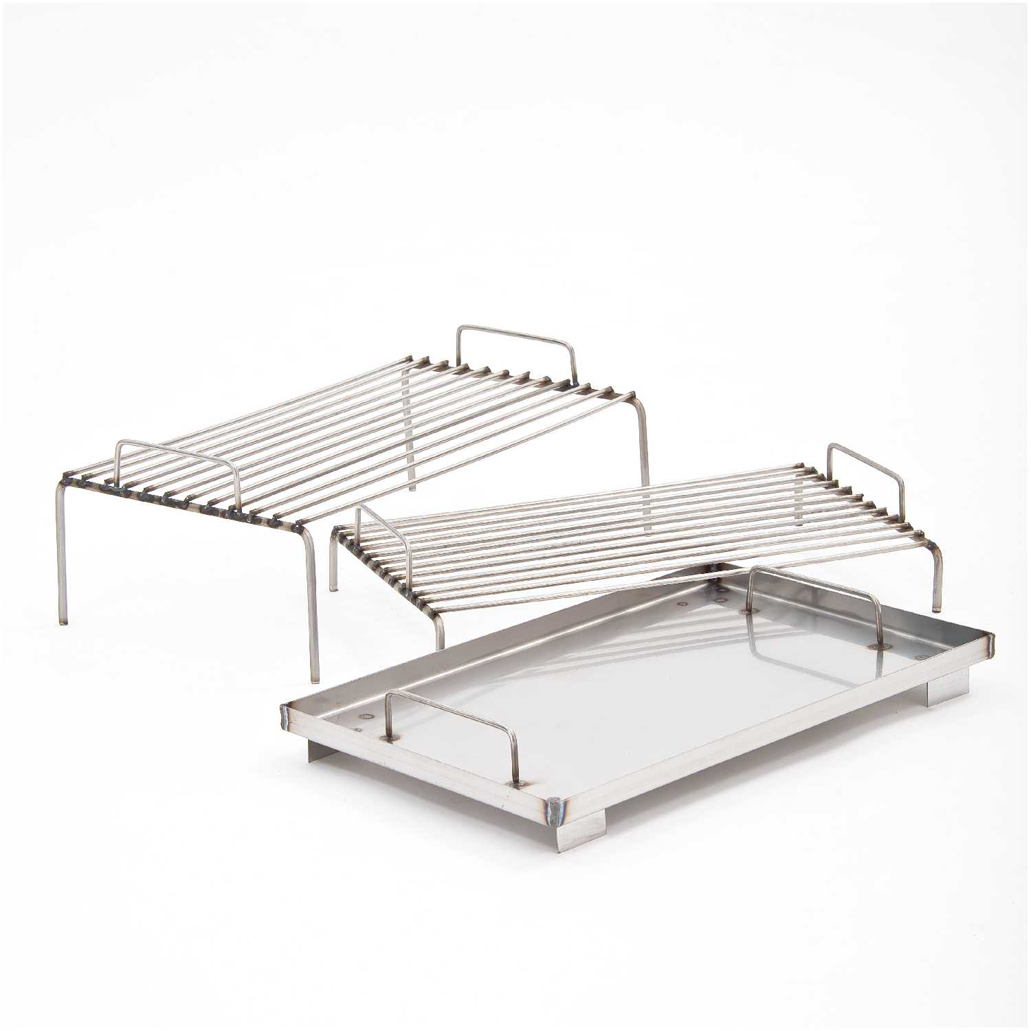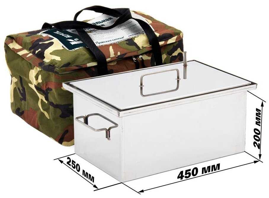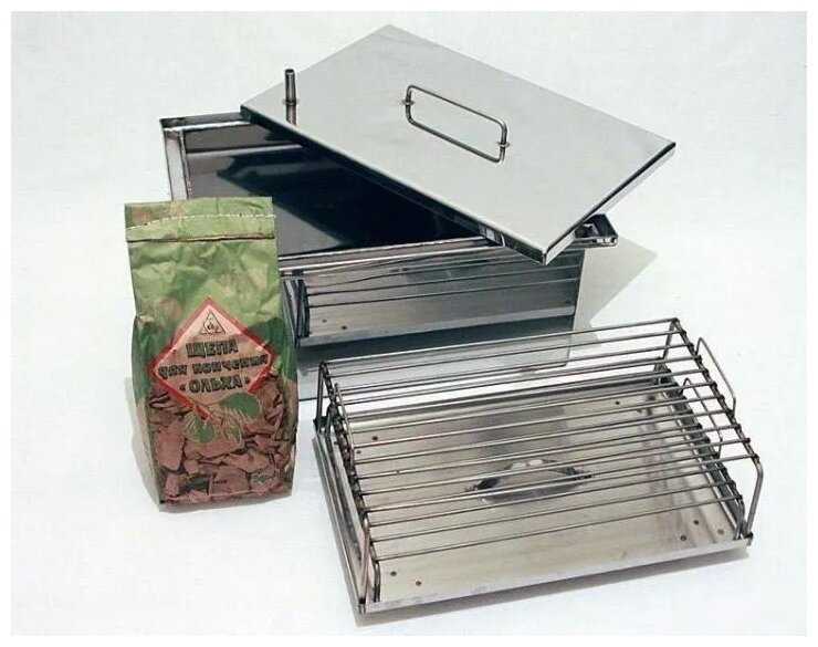 Дополнительная информация : | В комплекте: поддон, 2-а яруса прутковых решёток, сумка-переноска, ольховая щепа, книга с рецептами копчения |