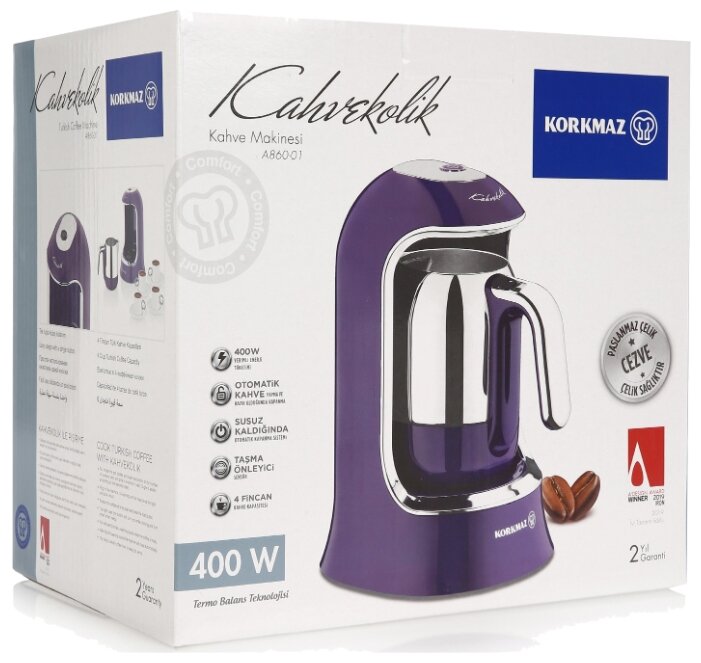 - + Кофе получается аутентичный турецкому. Не убегает. Выглядит очень стильно. Для кофе по турецки естественно нужен турецкий кофе, но любой другой молотый также подходит.