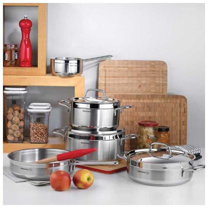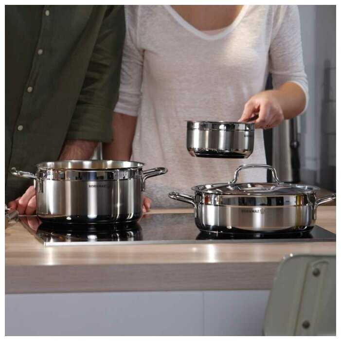 - + Работает с индукционной плитой, действительно сделана из нержавейки.