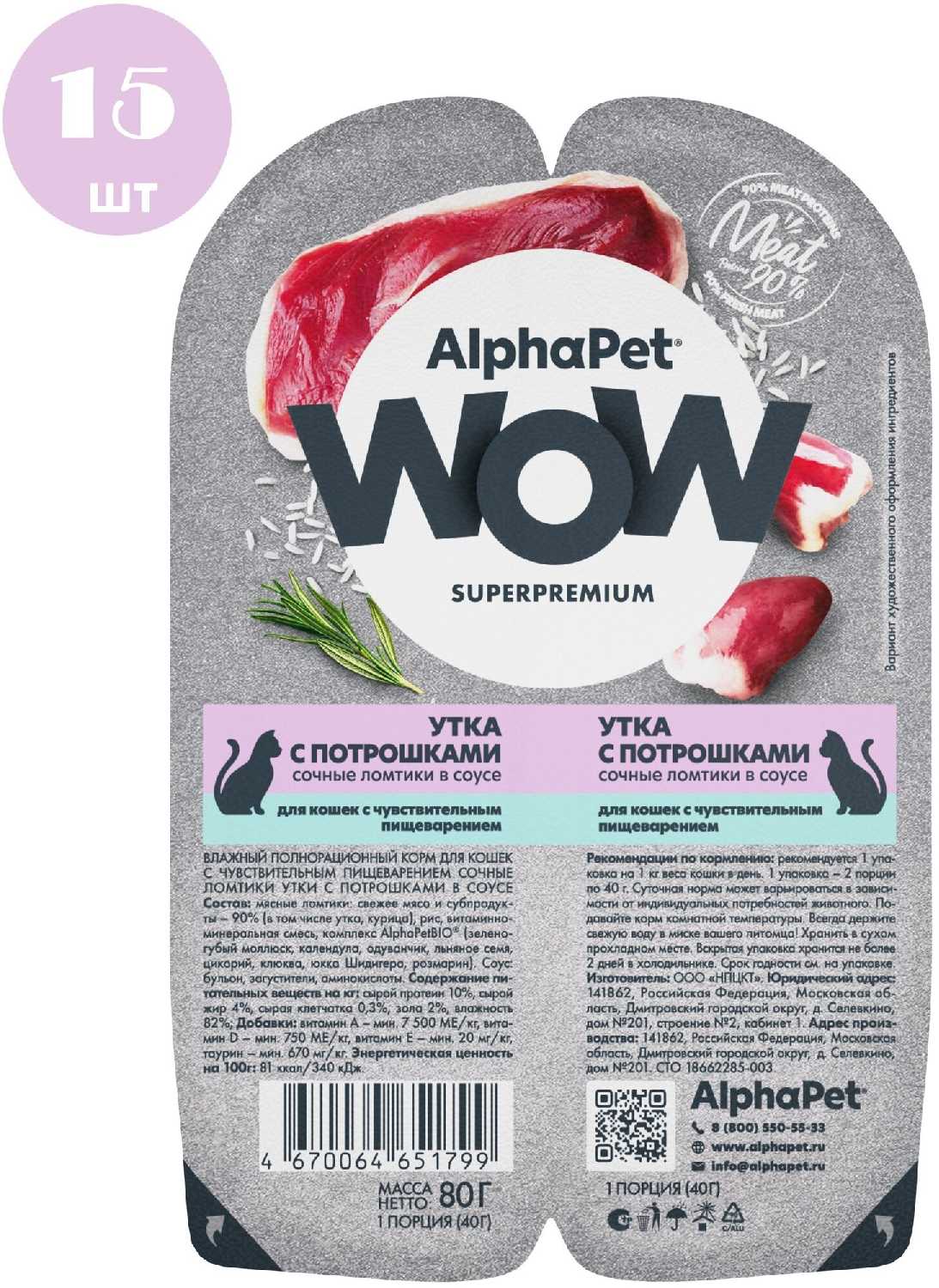 AlphaPet WOW пауч для кошек с чувствительным пищеварением (ломтики в соусе) Утка и потрошки