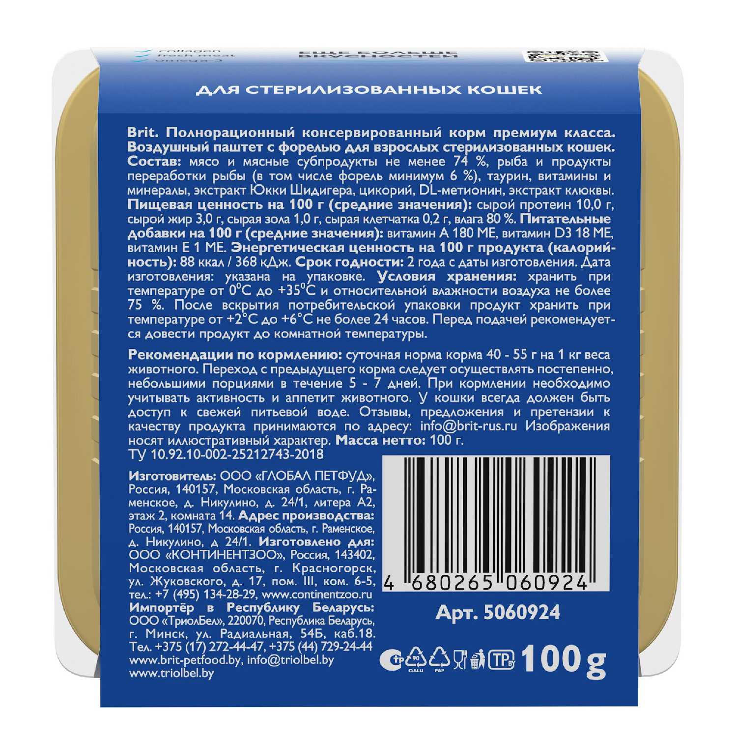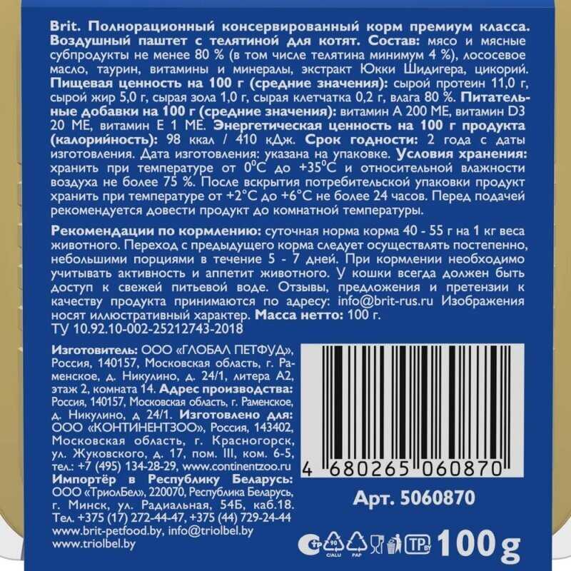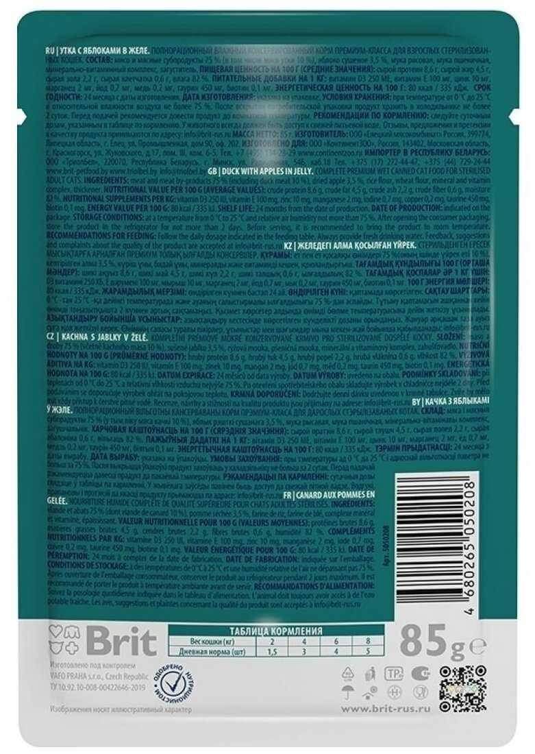Корма влажные для кошек Brit - отзывы пользователей. Рейтинг лучших моделей 2025 года