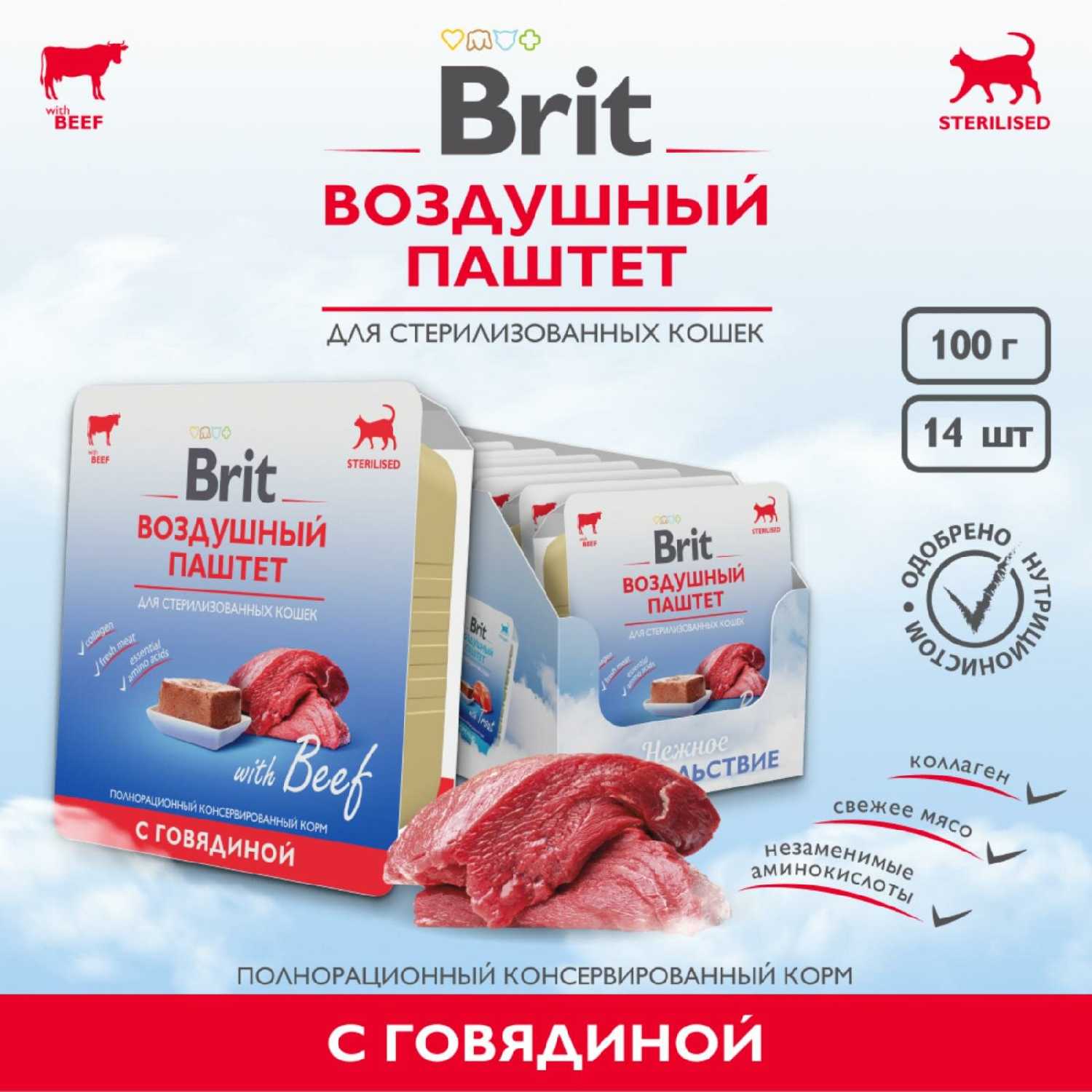 Brit Воздушный для стерилизованных кошек с говядиной (паштет)