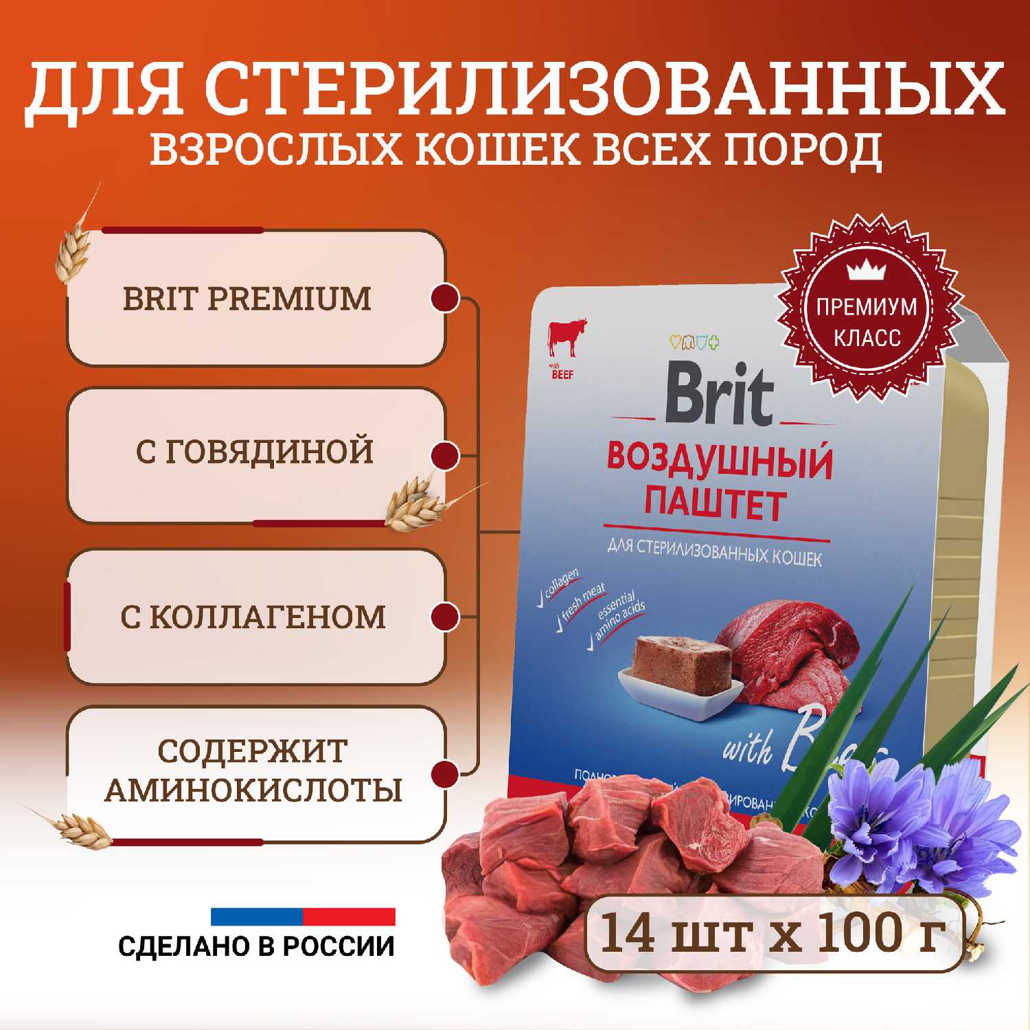 Brit Пауч для взрослых стерилизованных кошек (14шт.)