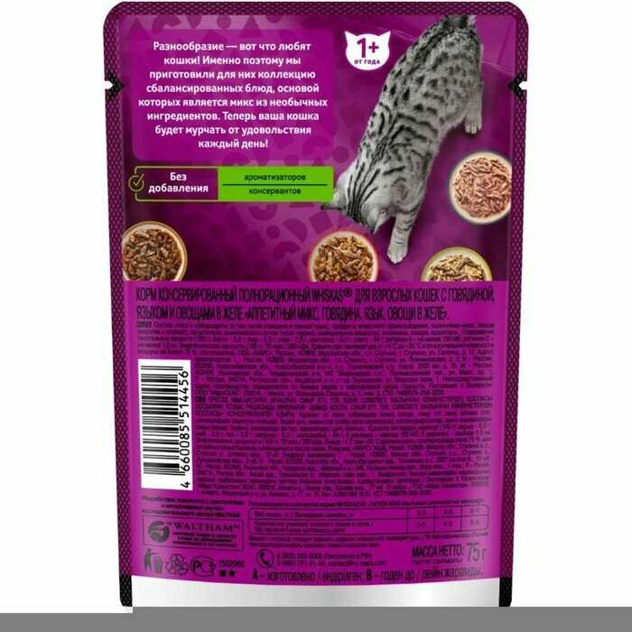 Whiskas Аппетитный микс с говядиной, с языком, с овощами (кусочки в соусе)