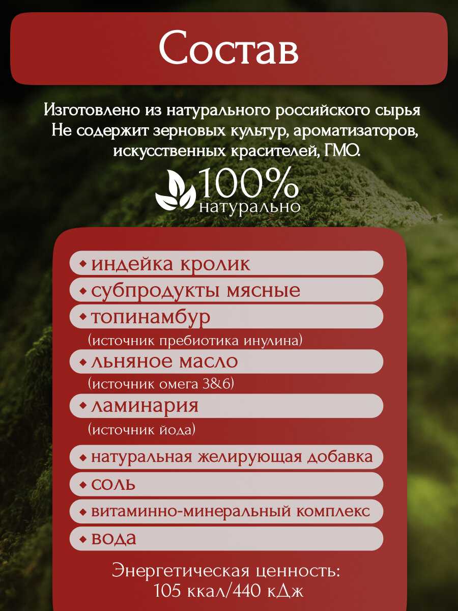 - Содержание жира всего 2,5 %. Благодаря этому корму у собаки прекратились приступы панкреатита