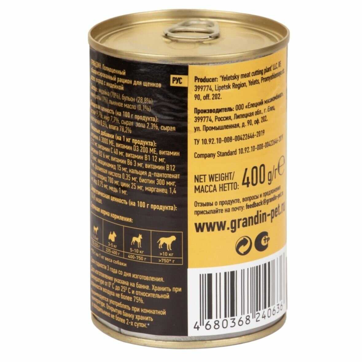 6.4/10 балловGrandin Влажный корм для взрослых собак с курицей и льняным маслом (400 гр)