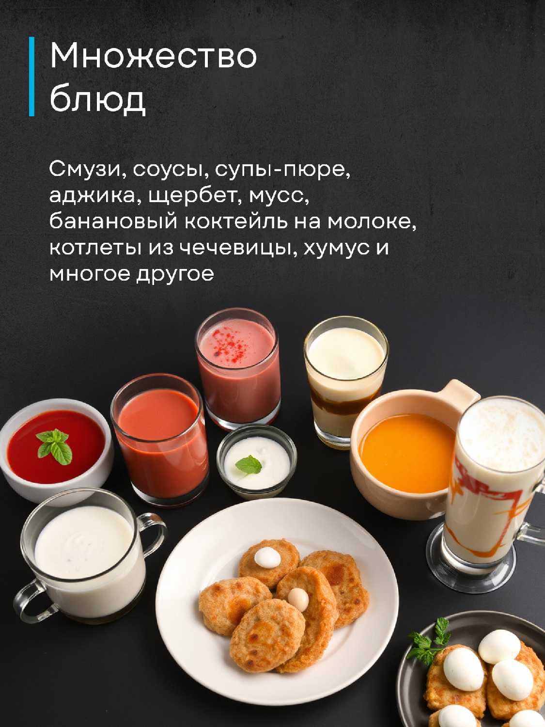 - Благодаря сильному двигателю, получается быстро взбивать смузи или превращать продукты в пюре для малышей.