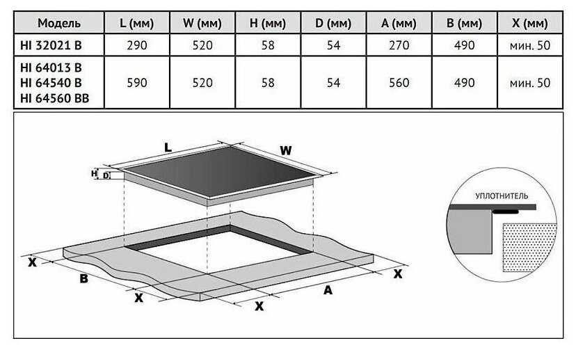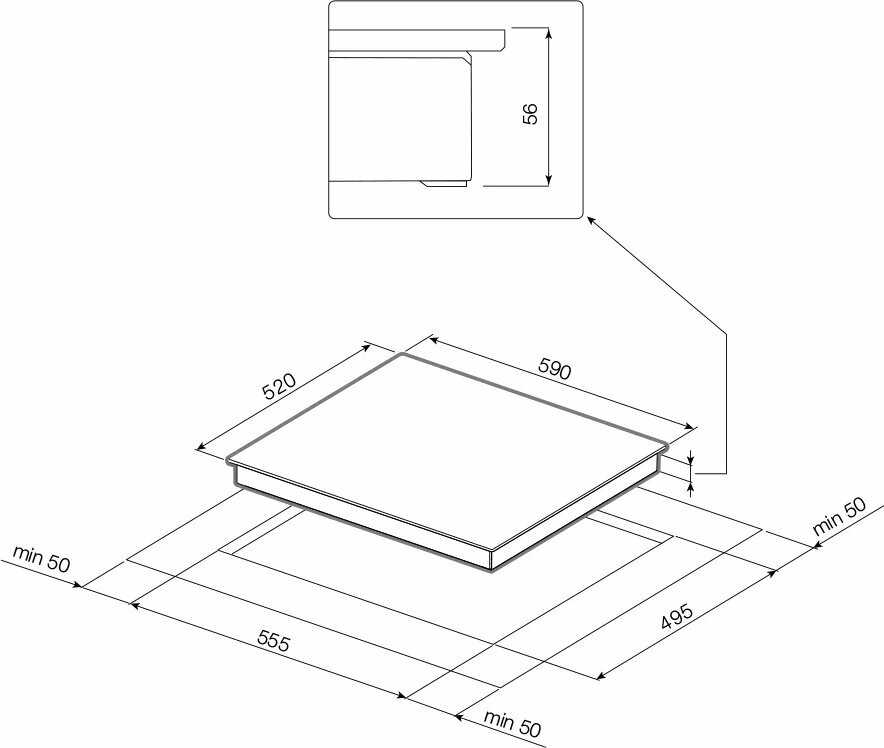 - + Отличная индукционная варочная поверхность на две конфорки. Устанавливается в уровень со столешницей, края панели скошенные.