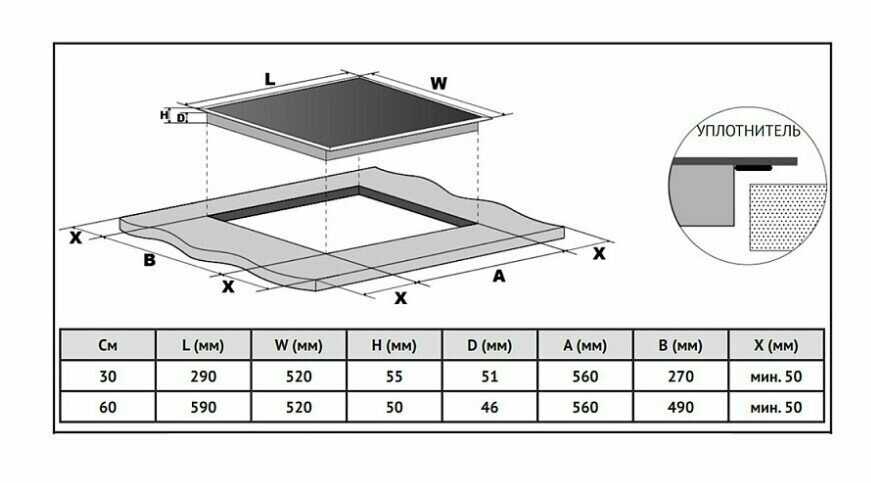 - - В инструкции есть ошибка: размеры выреза в столешнице указаны 270*560, и из-за этого в карточке товара схема врезки панели в столешницу тоже не правильная. Должна быть 270*500. Будьте внимательны