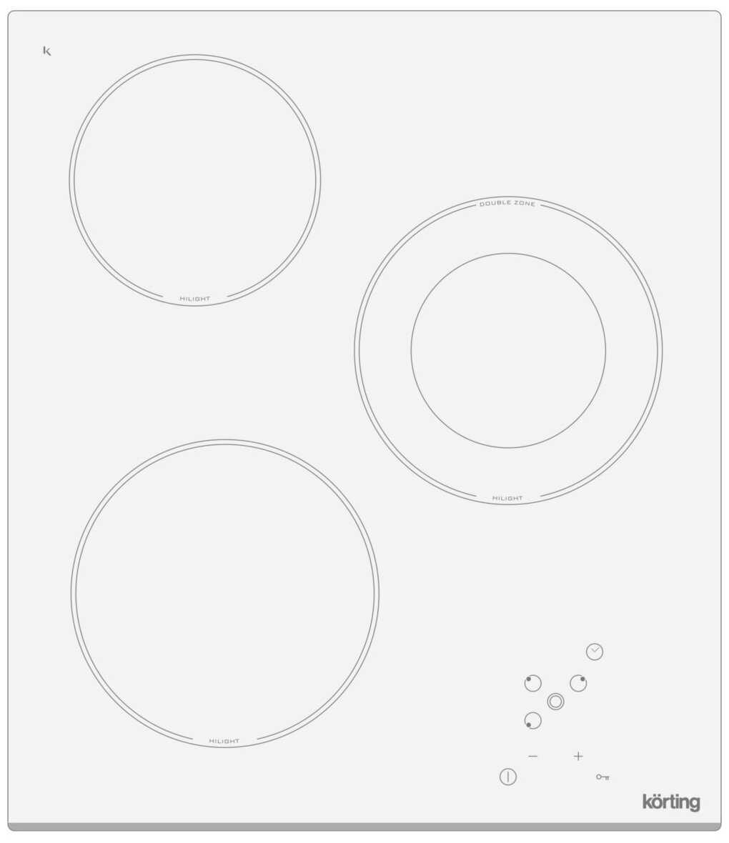 защитное отключение конфорок, кнопка блокировки панели, индикатор остаточного тепла