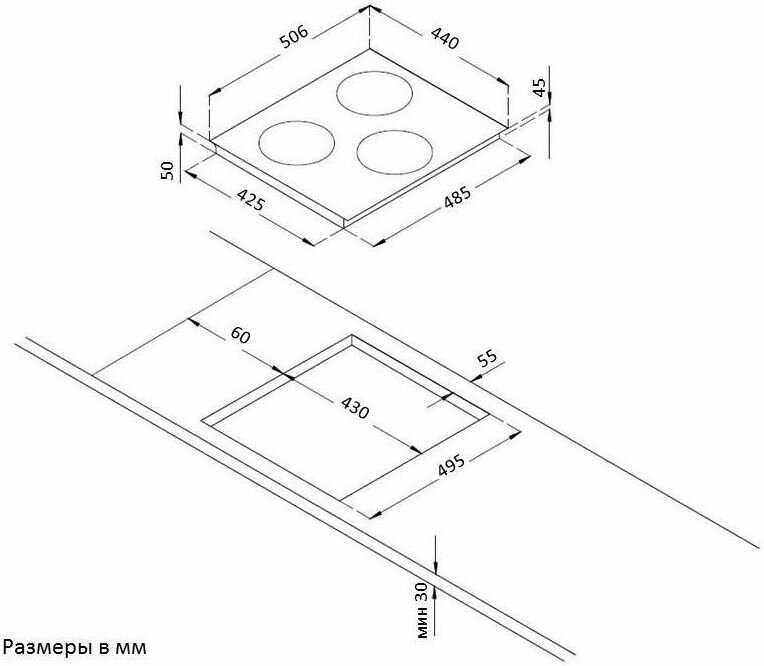 - количество конфорок: 3