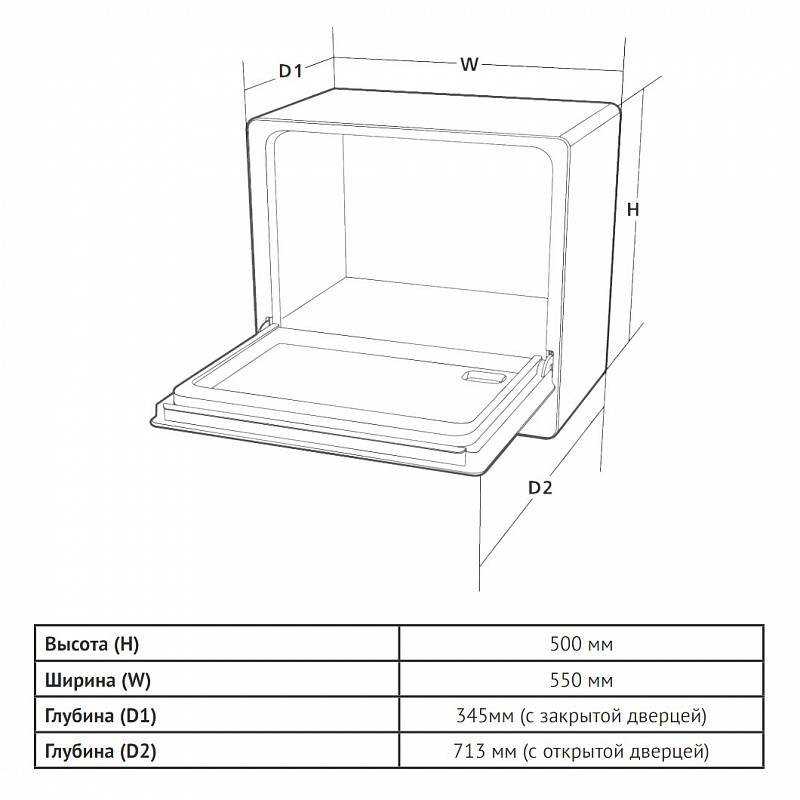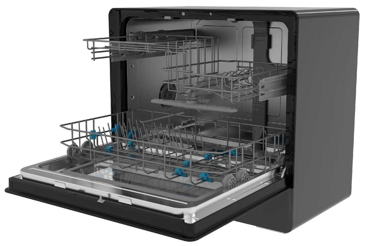 Компактность и вместительность: Модель позиционируется и подтверждается пользователями как решение для малогабаритных кухонь, квартир-студий и дач. Ее габариты позволяют установку на столешницу без сокращения полезного пространства. Несмотря на компактные внешние размеры, внутренняя организация пространства признана продуманной: машина вмещает до 5 комплектов посуды, включая тарелки, чашки, столовые приборы и даже небольшие кастрюли или сковородки. Корзины и лоток для приборов хорошо сконструированы, обеспечивая удобную загрузку и выгрузку.