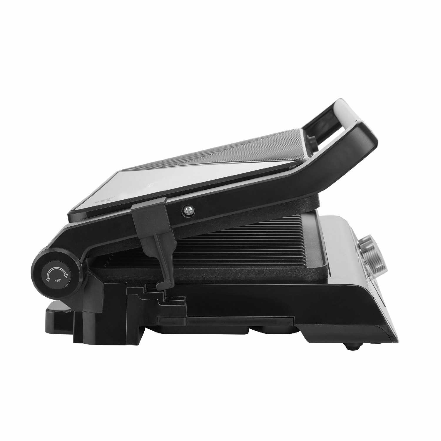 Ограничитель высоты верхней части, раскрытие на 180, подвижная верхняя часть на фото показано, поддон для жира и сока, звуковой сигнал при подключении к сети.