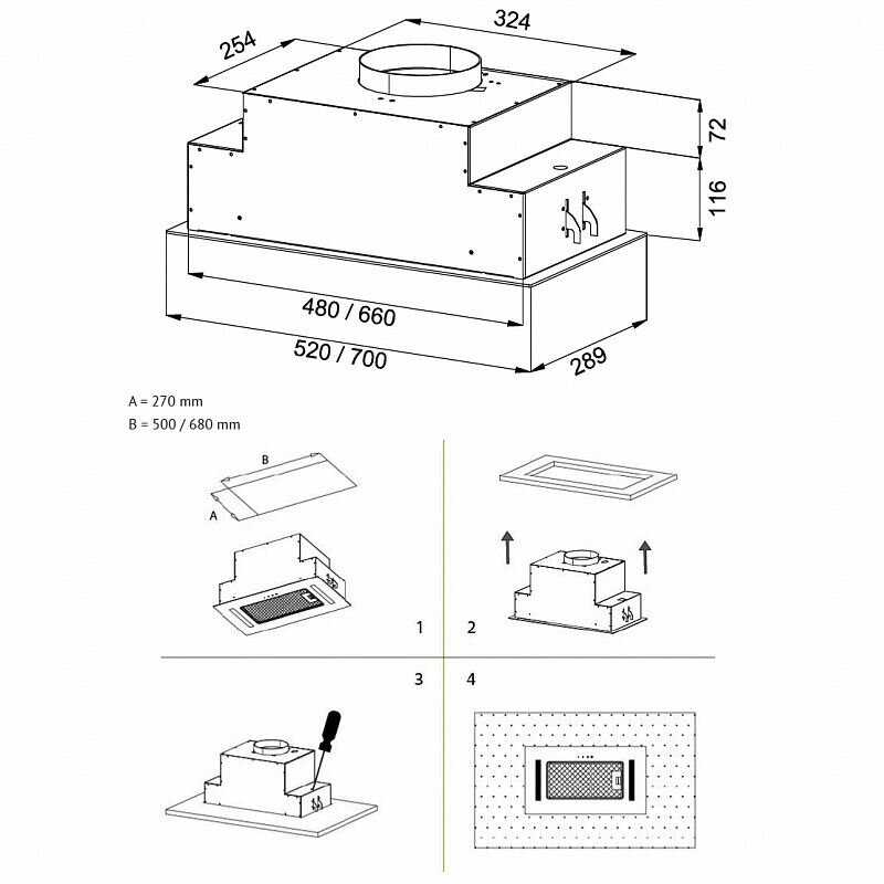 - + Мощная вытяжка, красиво встала во встроенную мебель