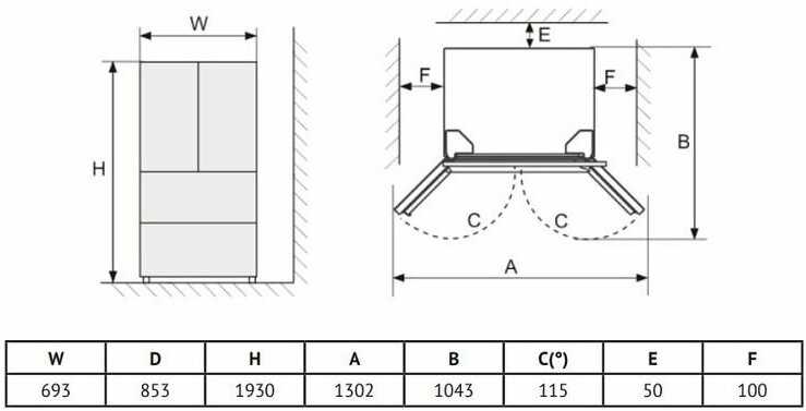 | Особенности конструкции : | French Door, Side by Side, антибактериальное покрытие, дисплей, перевешиваемые двери |