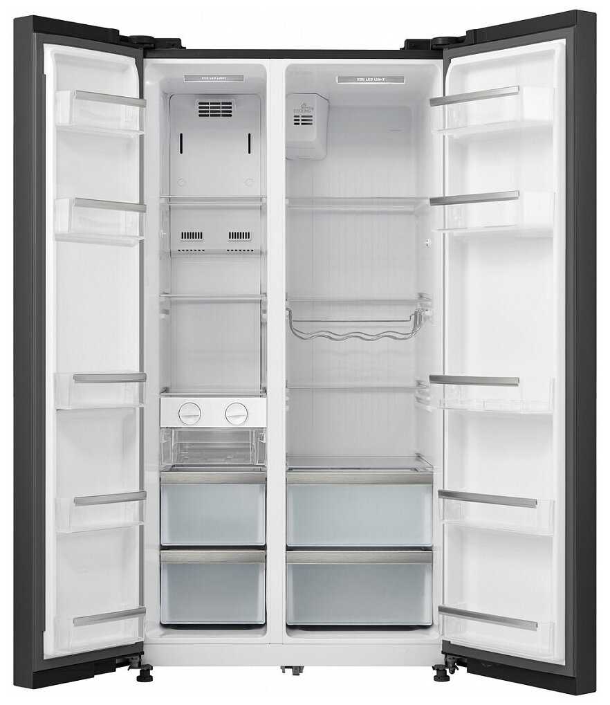 - Side-by-Side конструкция с огромной морозилкой подходит для интенсивного хранения.