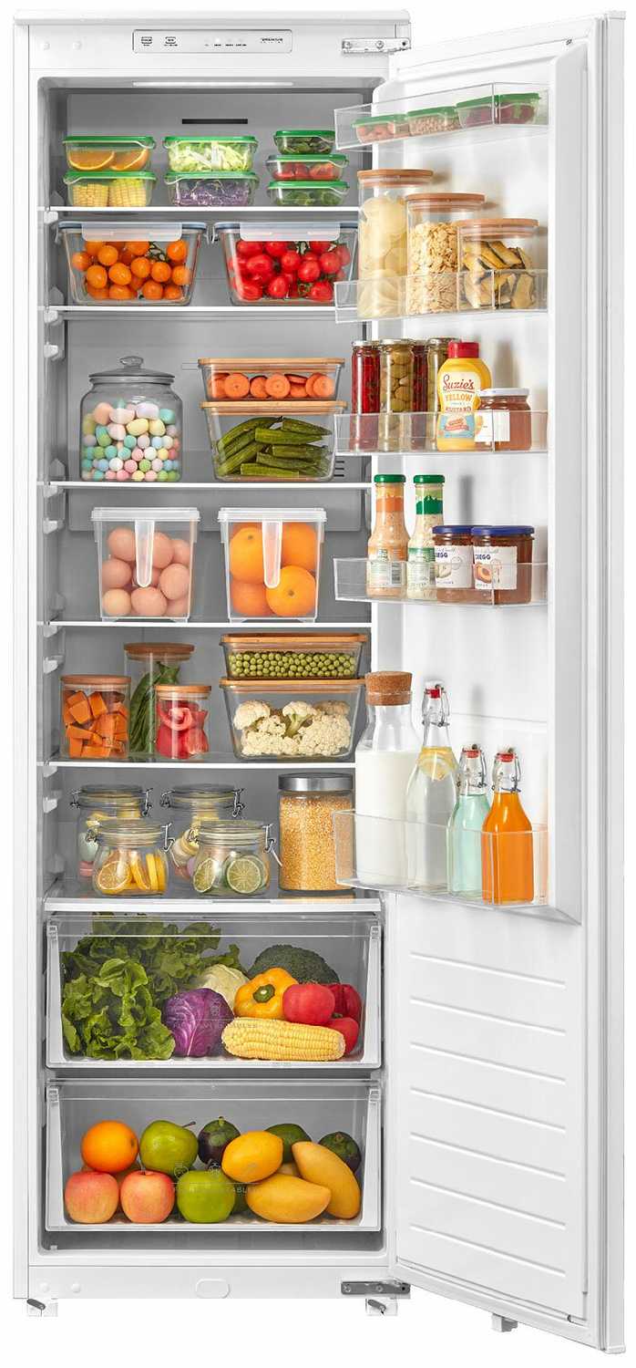 Прекрасный холодильник, тихий, хорошо встал во встроенную кухню. Порадовало большое количество полок. По ширине и глубине уступает отдельностоящим холодильникам, но мне хватает, он сверху до пола весь холодильник. По классике идёт форма для льда и яиц, в этом холодильнике не нашла лотка для яиц, придётся докупать. Но полки в двери широкие, яйца в упаковке магазинной прекрасно заходят. Ещё легко перевесилась дверь для другого направления открывания. Покупала в наборе с морозилкой этой фирмы. С брендом знакома, дома также есть микроволновка встроенная этой фирмы.