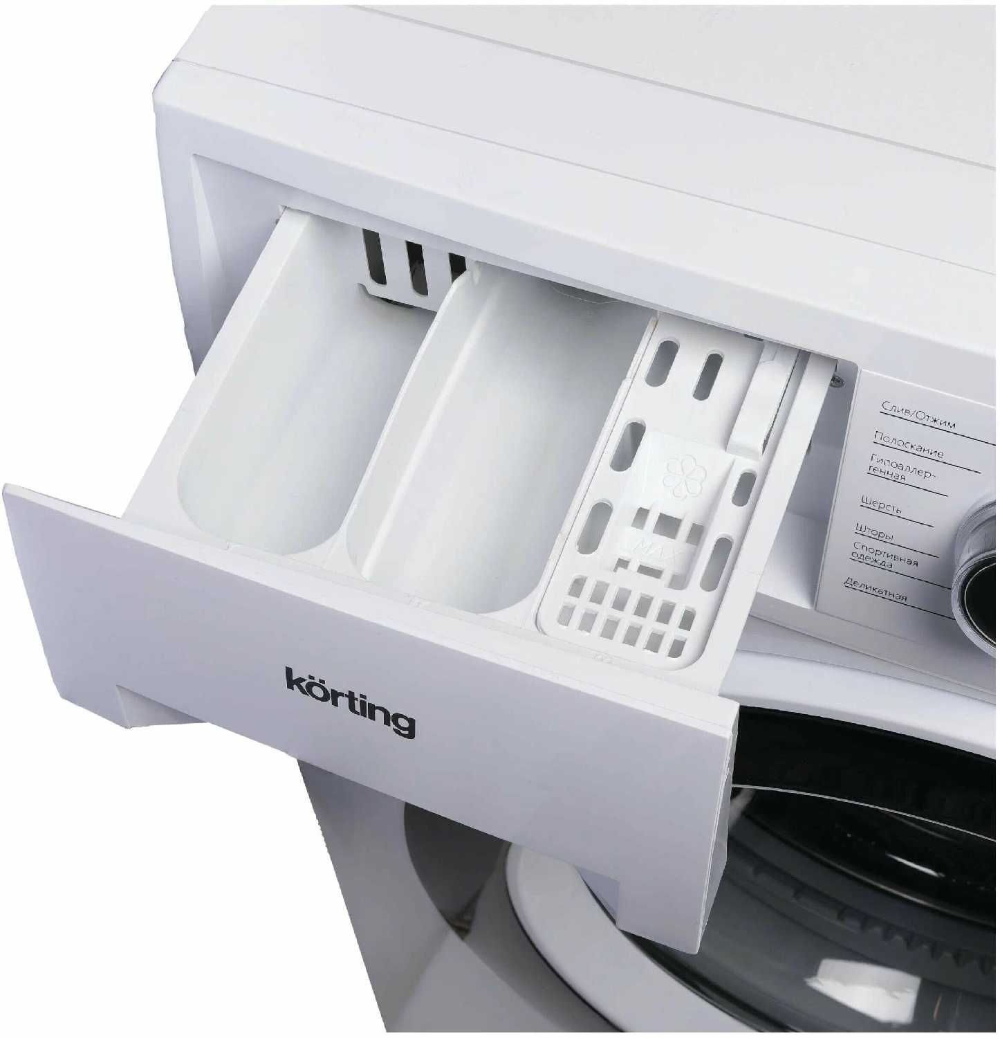 - Автоматические программы подбираются по типу ткани, вещи выходят без разводов пены даже при пересыпе порошка.